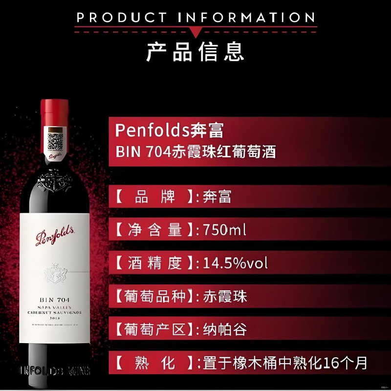 奔富 BIN704产自于加州纳帕谷(Napa County, California),美国最好的葡萄酒产地。