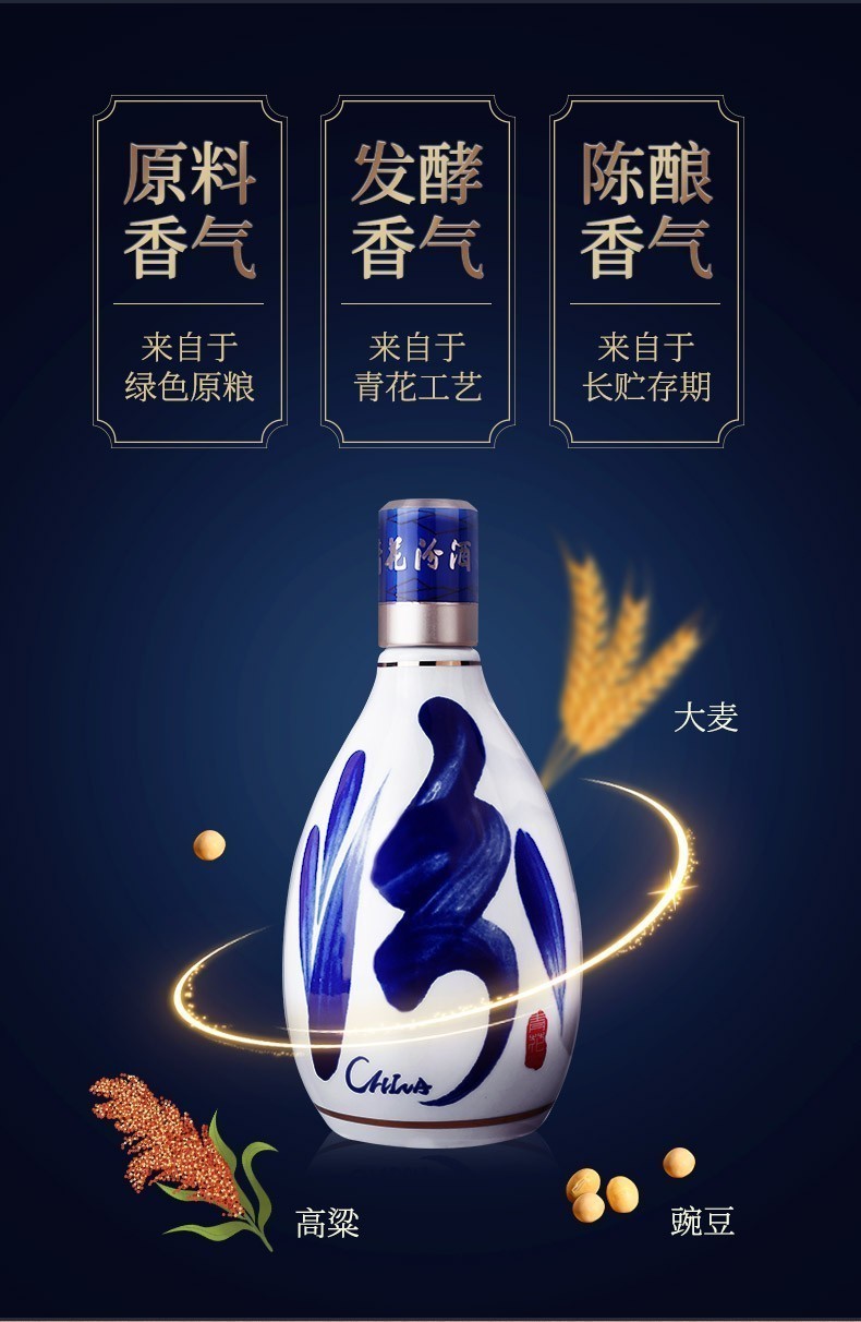 青花汾酒,骨子里的中国,53%vol清香型白酒始祖。